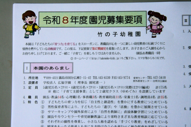 ただし「募集要項&入園願書」の配布は10月1日からです
